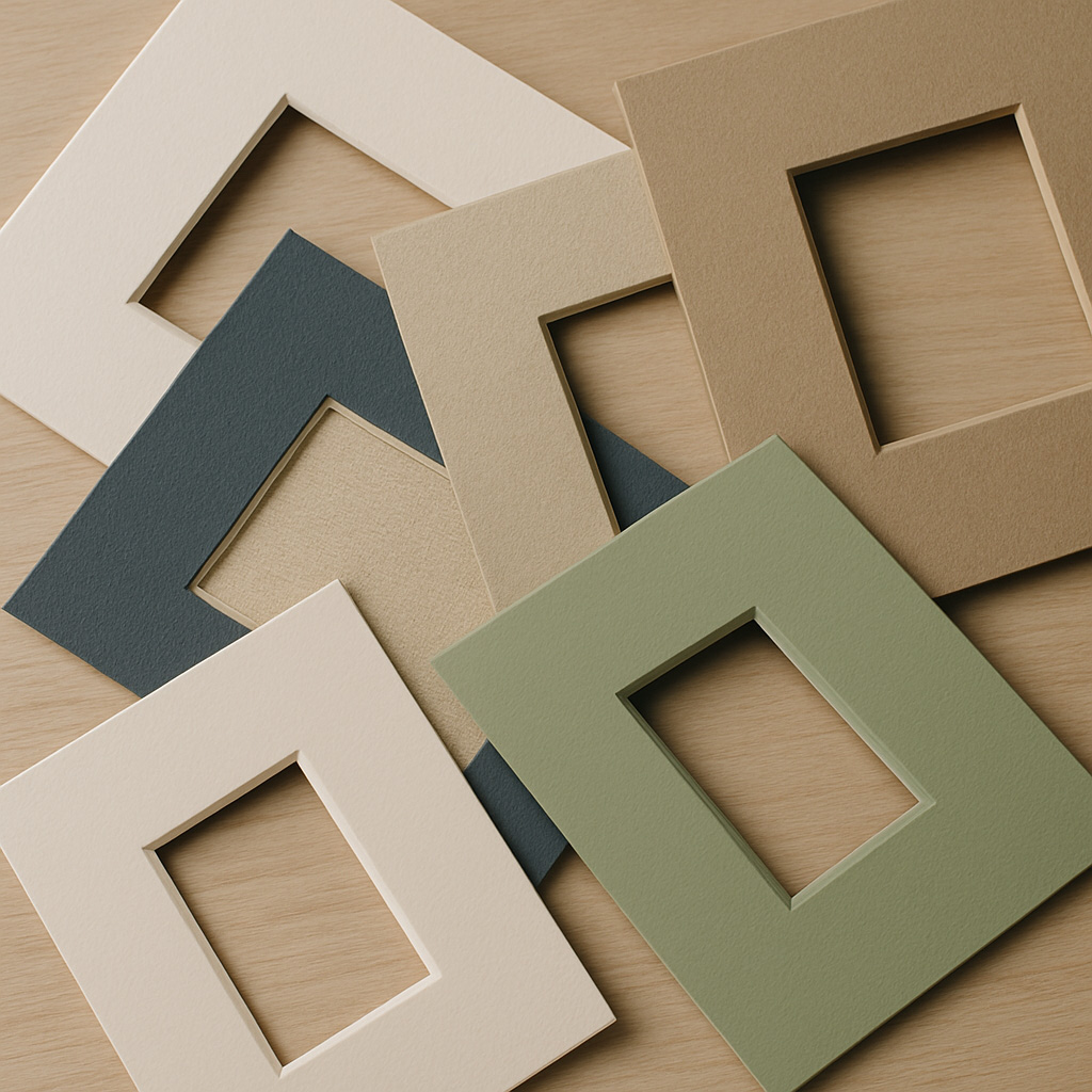 In unserer Galerie beraten wir Sie persönlich bei der Farbauswahl. Sie sehen vor Ort, wie verschiedene Töne mit Ihrem Werk harmonieren. Wir führen über 150 Varianten in verschiedenen Farben, Strukturen und Stärken – für jede Stilrichtung und jedes Motiv.