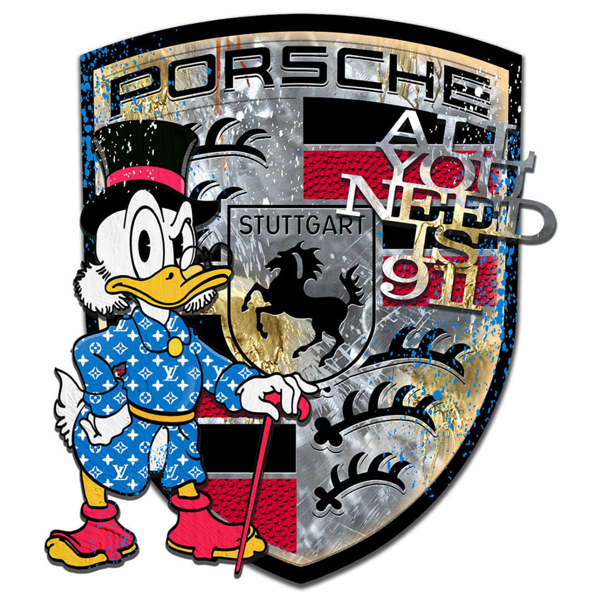 „All You Need Is 911“ von Devin Miles vereint ikonische Pop-Art mit der Faszination automobiler Klassiker. Das Werk kombiniert bekannte Comic-Elemente mit dem legendären Porsche-Design und schafft so eine kraftvolle Verbindung aus Luxus, Lifestyle und moderner Kunst.